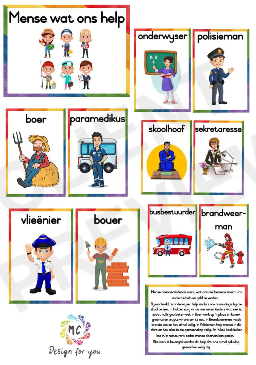 Hierdie helder en opvoedkundige plakkate is ontwerp om kinders te leer oor die belangrike rolle wat mense in ons alledaagse lewens speel.